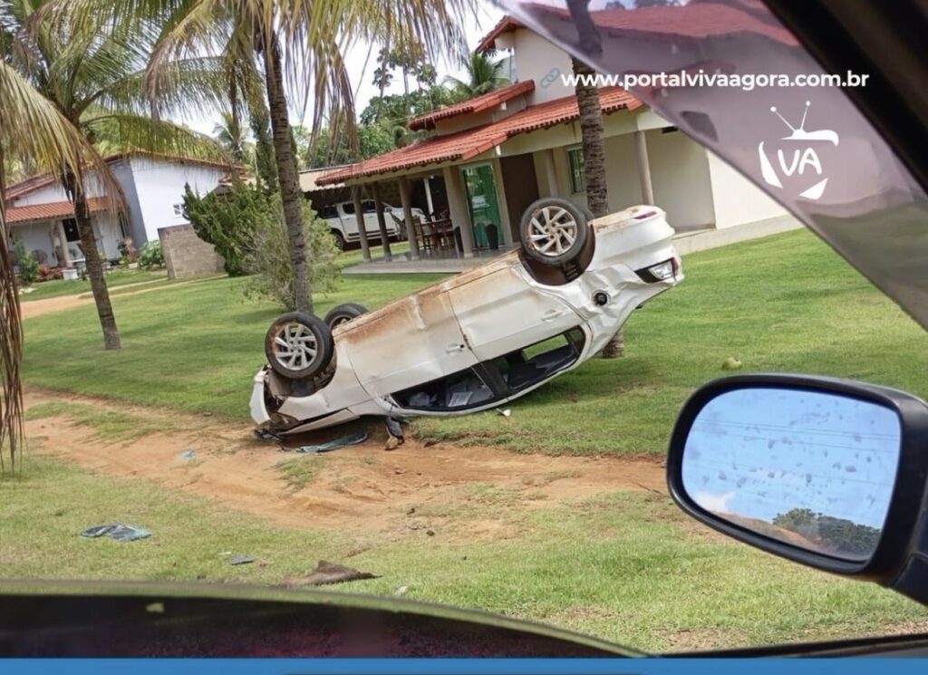 O veículo ficou tombado dentro do terreno, parando no jardim do imóvel. Apesar do susto, a residência não foi atingida. De acordo com as primeiras informações, o acidente resultou apenas em ferimentos leves. As circunstâncias do capotamento ainda não foram detalhadas.