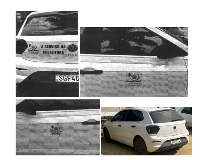 A apuração do Ministério Público revelou que diversos veículos da frota municipal não possuem a adesivagem obrigatória ou apresentam o brasão do município desgastado e praticamente ilegível. Também foi constatado que fotos enviadas pela Prefeitura para comprovar a regularização não atendem às exigências legais, apresentando imagens turvas ou sem ângulos suficientes para fiscalização.