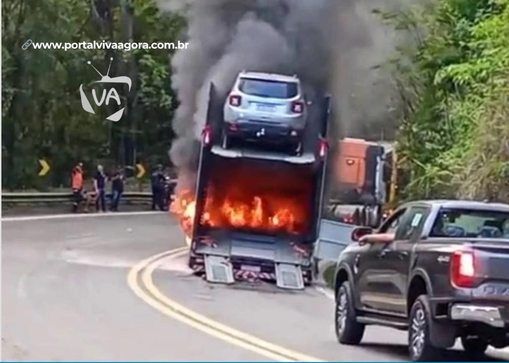 De acordo com informações da Polícia Rodoviária Federal (PRF), o Corpo de Bombeiros foi acionado para controlar as chamas, que começaram na parte de baixo do veículo e se espalharam rapidamente, atingindo também os automóveis que estavam na plataforma superior.