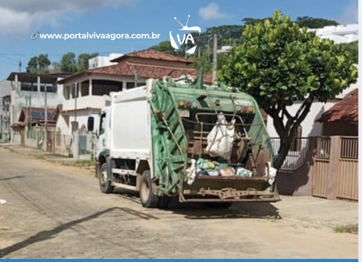 Um caminhão responsável pela coleta de lixo do município de